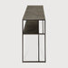 Relying on some of the oldest artistic ancestral techniques, the Pentagon's surface is shaped by our skilled artisans. Natural mineral powders and colour pigments blend to form the unique finish. The receeded lower shelf set against the thickness of the top makes for a revealing graphic contrast against the openness of the base. Clean lines and a standardized height showcase the simple beauty of the metal work.