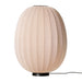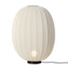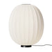 Floor lamp with foot switch on cord providing diffused ambient light. Bulb is visible through shade and one can use either a frosted or clear bulb to change the look. Production Process: The shade is knitted in three dimensions to give the ultimate in visual texture and interest. This process produces no waste material.
